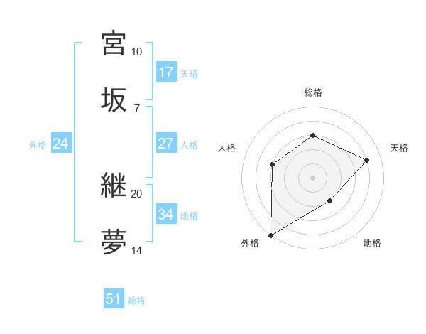 宮坂 継夢さんを姓名の画数から五運を鑑定