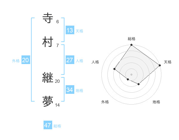 寺村 継夢さんの総格は47画の5点!