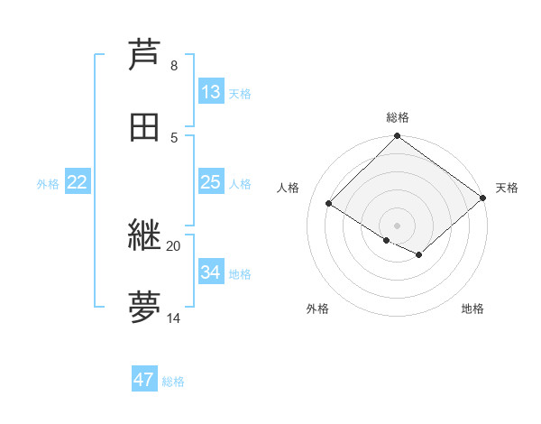 芦田 継夢さんを姓名の画数から五運を鑑定