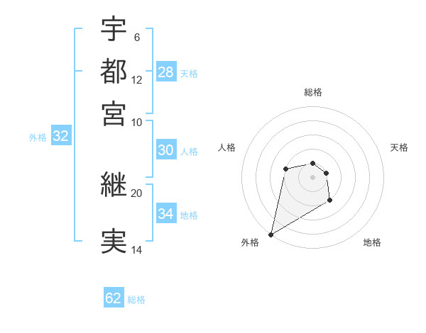 宇都宮 継実さんを姓名の画数から五運を鑑定