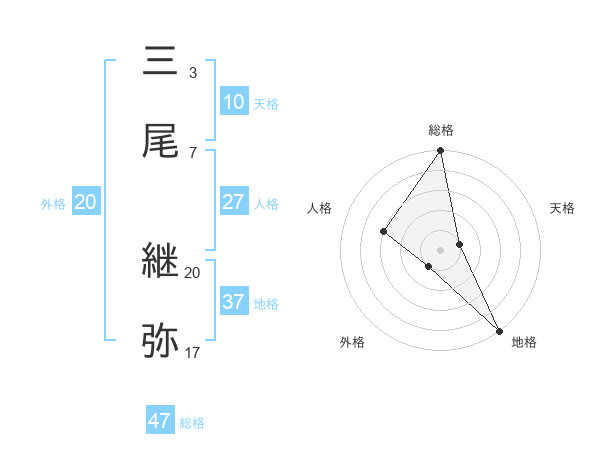 三尾 継弥さんを姓名の画数から五運を鑑定