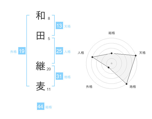 和田 継麦さんの地格は31画の5点!