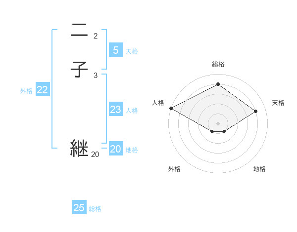 二子 継さんの外格は22画の1点!