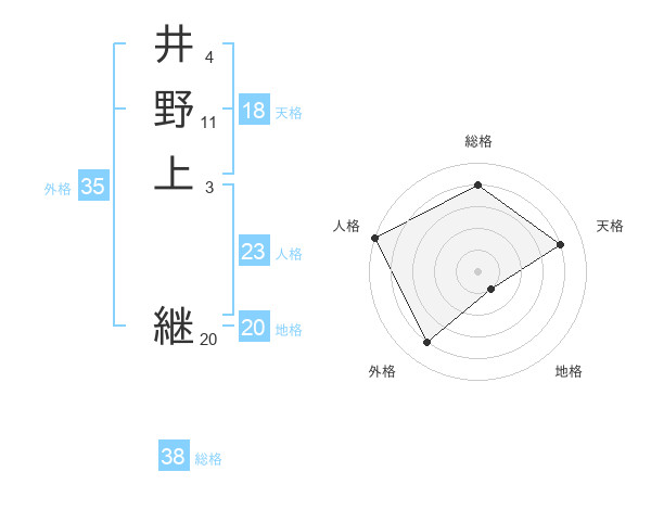井野上 継さんの総格は38画の4点