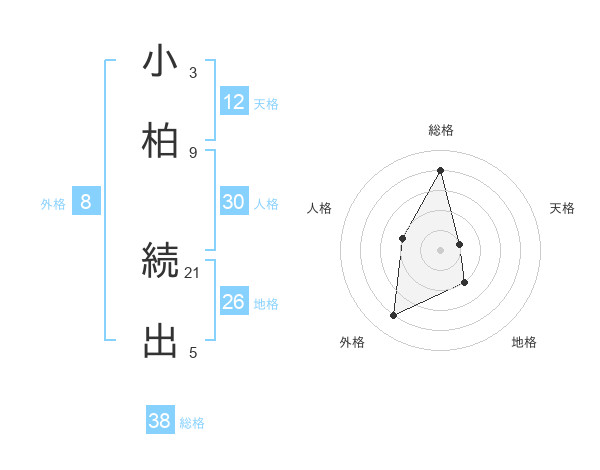 小柏 続出さんの総格は38画の4点!
