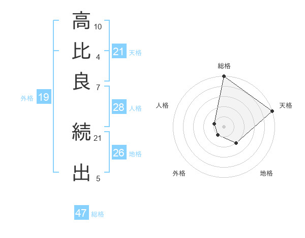 高比良 続出さんの総格は47画の5点!