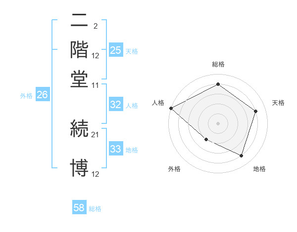 二階堂 続博さんを姓名の画数から五運を鑑定