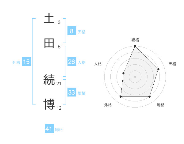 土田 続博さんの総格は41画の5点