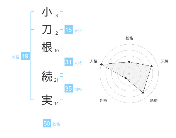 小刀根 続実さんの総格は50画の2点!
