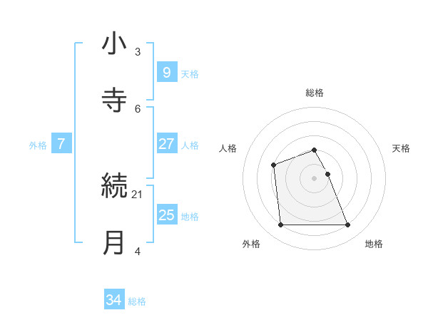 小寺 続月さんの総格は34画の2点!