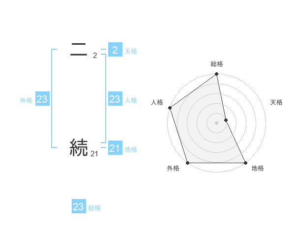 二 続さんの外格は23画の5点!