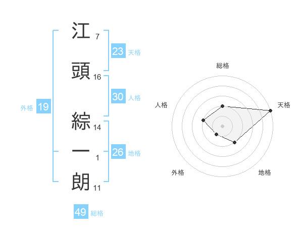 江頭 綜一朗さんを姓名の画数から五運を鑑定
