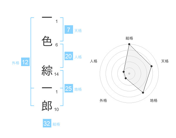 一色 綜一郎さんの総格は32画の5点!
