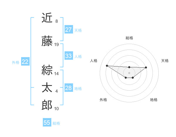 近藤 綜太郎さんを姓名の画数から五運を鑑定