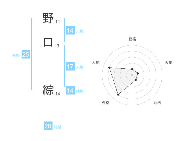 野口 綜さんの総格は28画の1点!