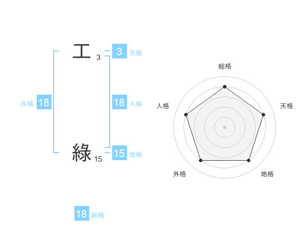 工 綠さんの総格は18画の4点!