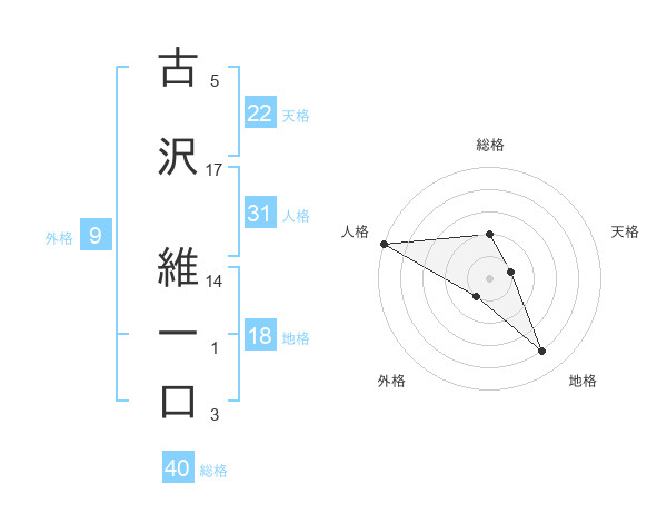 古沢 維一口さんを姓名の画数から五運を鑑定