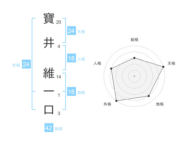 寶井 維一口さんの天格は24画の5点!