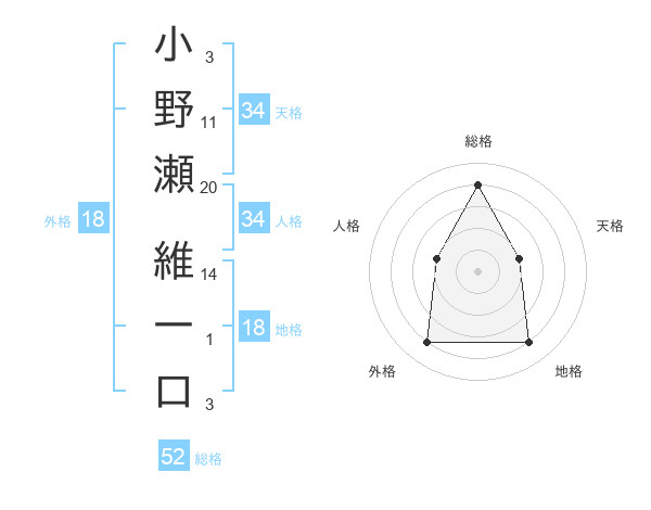 小野瀬 維一口さんを姓名の画数から五運を鑑定