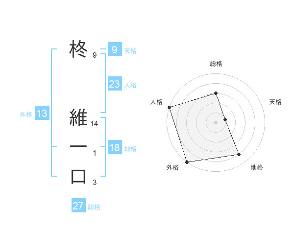 柊 維一口さんの総格は27画の3点!
