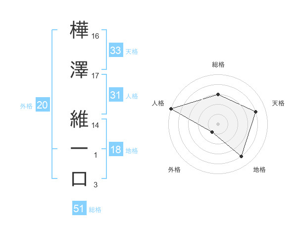 樺澤 維一口さんを姓名の画数から五運を鑑定
