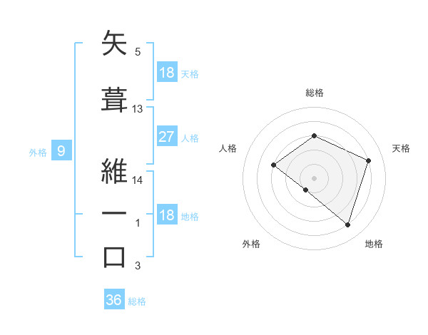 矢葺 維一口さんを姓名の画数から五運を鑑定
