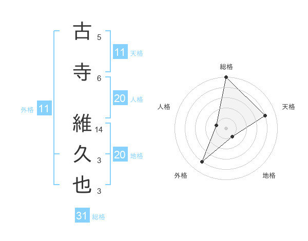 古寺 維久也さんを姓名の画数から五運を鑑定