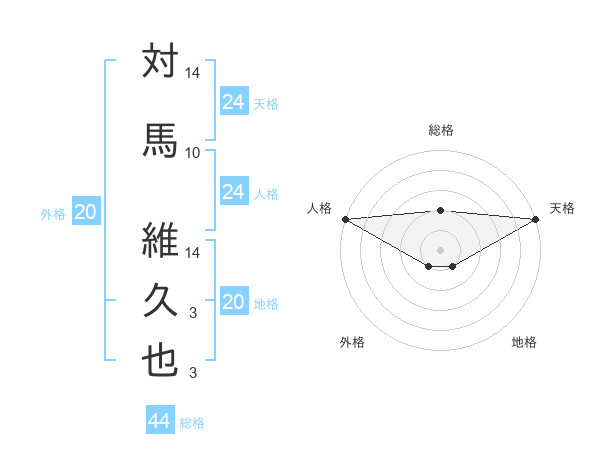 対馬 維久也さんを姓名の画数から五運を鑑定