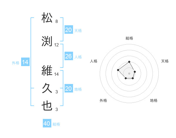 松渕 維久也さんを姓名の画数から五運を鑑定