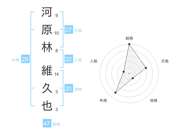 河原林 維久也さんを姓名の画数から五運を鑑定