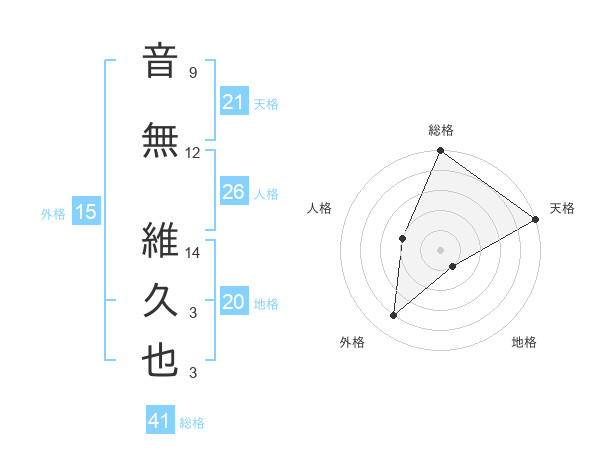 音無 維久也さんの総格は41画の5点!