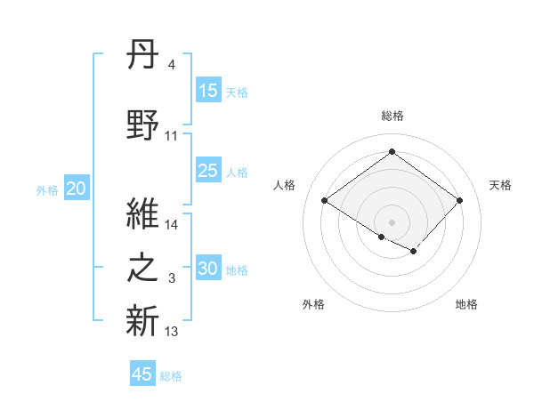 丹野 維之新さんを姓名の画数から五運を鑑定