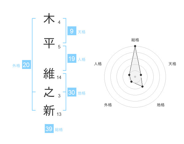 木平 維之新さんの総格は39画の5点!