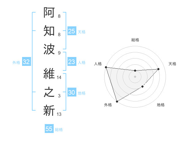 阿知波 維之新さんを姓名の画数から五運を鑑定