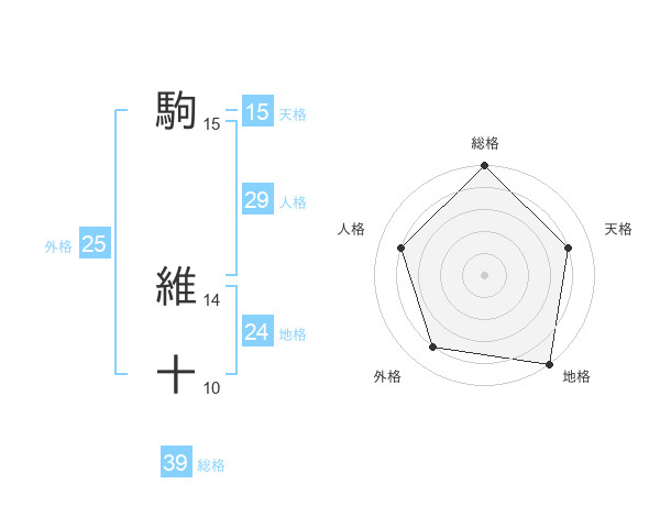 駒 維十さんの総格は39画の5点!