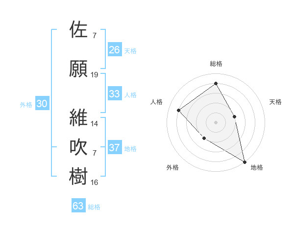 佐願 維吹樹さんを姓名の画数から五運を鑑定