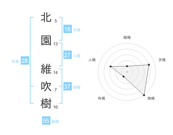 北園 維吹樹さんを姓名の画数から五運を鑑定