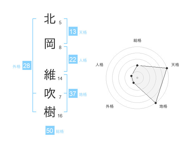 北岡 維吹樹さんの総格は50画の2点!