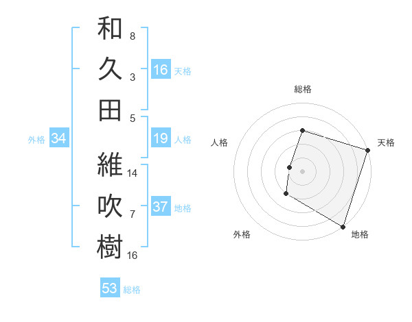 和久田 維吹樹さんを姓名の画数から五運を鑑定