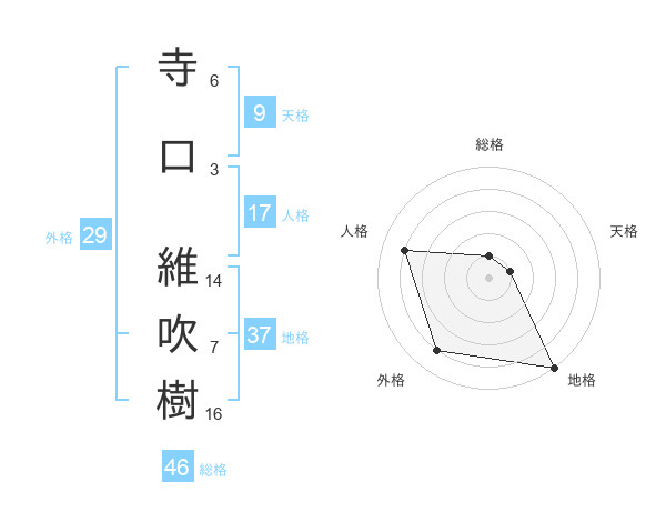 寺口 維吹樹さんを姓名の画数から五運を鑑定