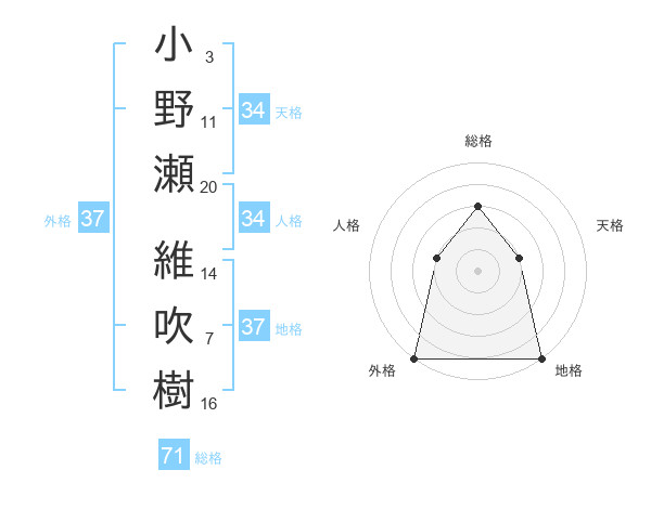 小野瀬 維吹樹さんを姓名の画数から五運を鑑定