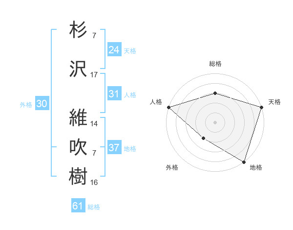 杉沢 維吹樹さんを姓名の画数から五運を鑑定