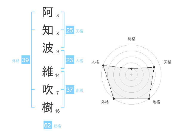 阿知波 維吹樹さんを姓名の画数から五運を鑑定
