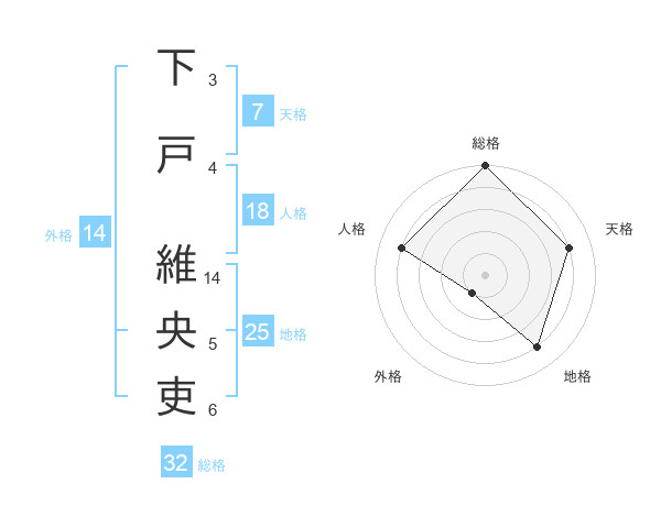 下戸 維央吏さんを姓名の画数から五運を鑑定