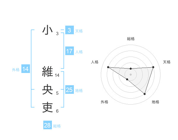 小 維央吏さんの天格は3画の4点!