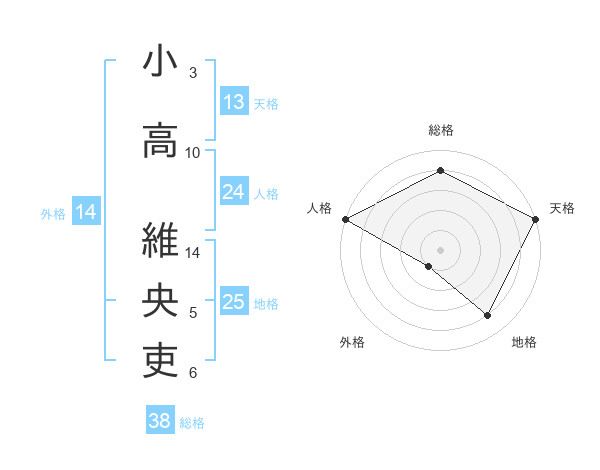 小高 維央吏さんの総格は38画の4点!