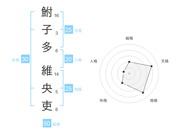鮒子多 維央吏さんの総格は50画の2点!
