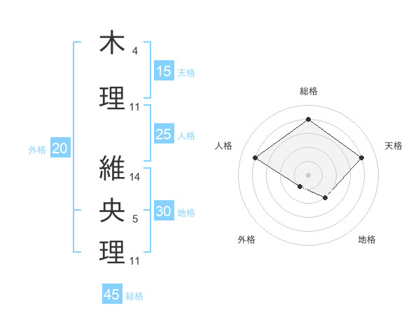 木理 維央理さんの総格は45画の4点!