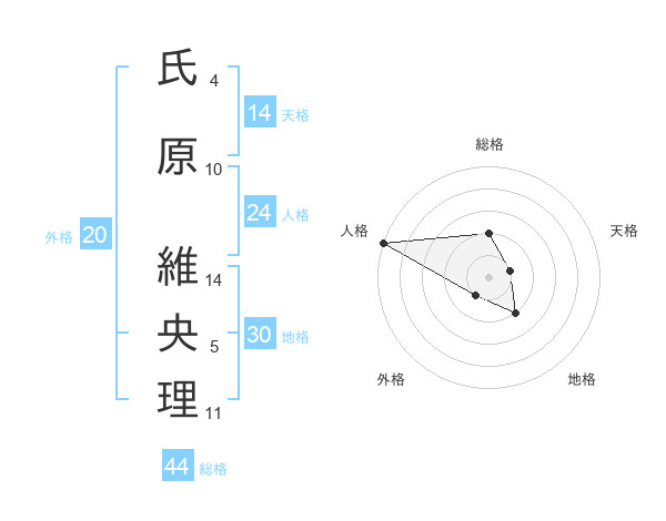 氏原 維央理さんの総格は44画の2点!