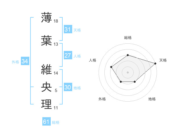 薄葉 維央理さんを姓名の画数から五運を鑑定